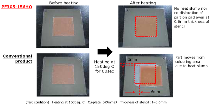 Reduce heat slump & fluidity at preheating and prevent dislocation of part on pad during reflow
